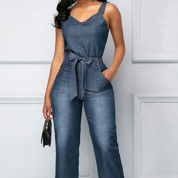 Saashi V-Neck Button Lace-Up Jumpsuit