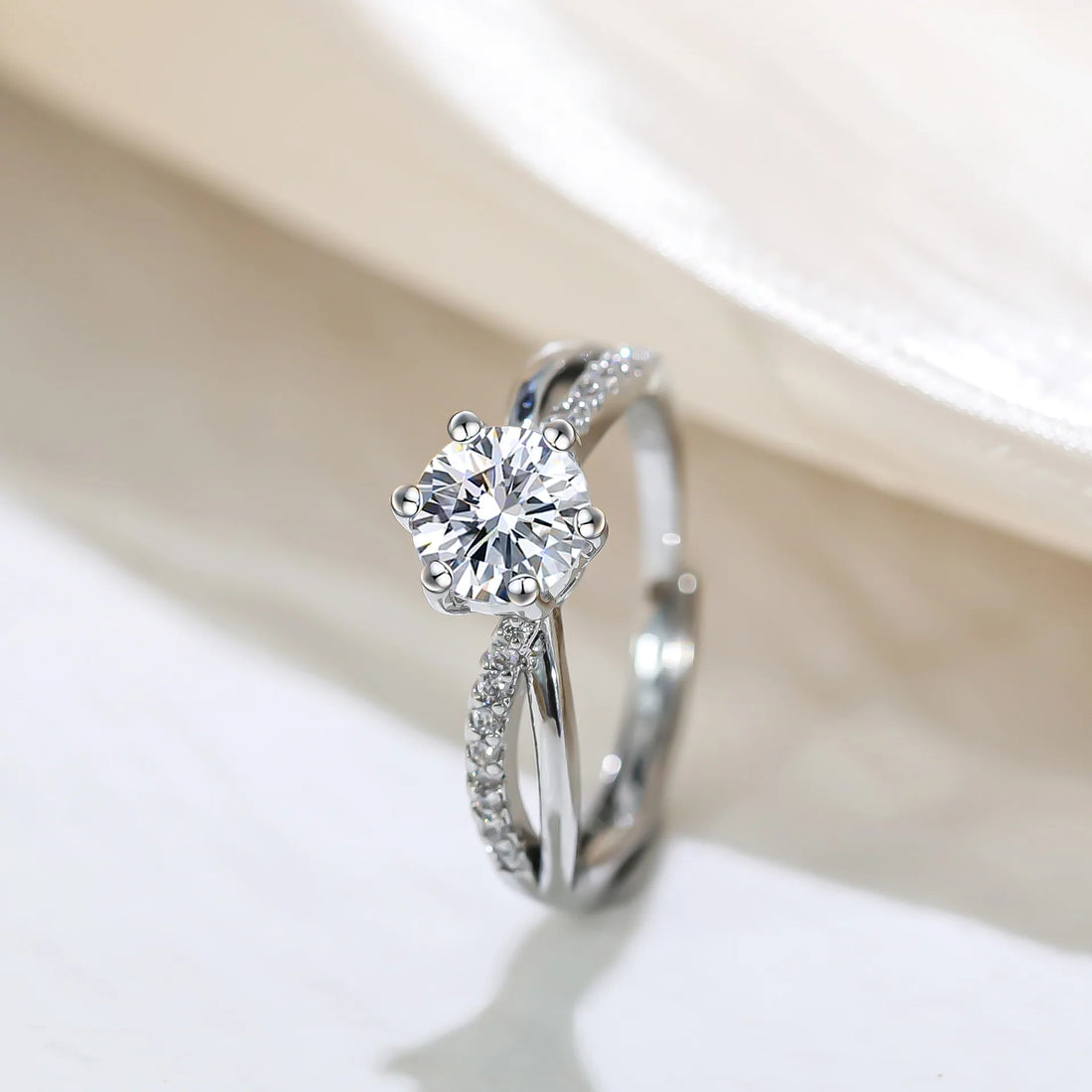 Saashi Solitaire Crisscross Engagement Ring