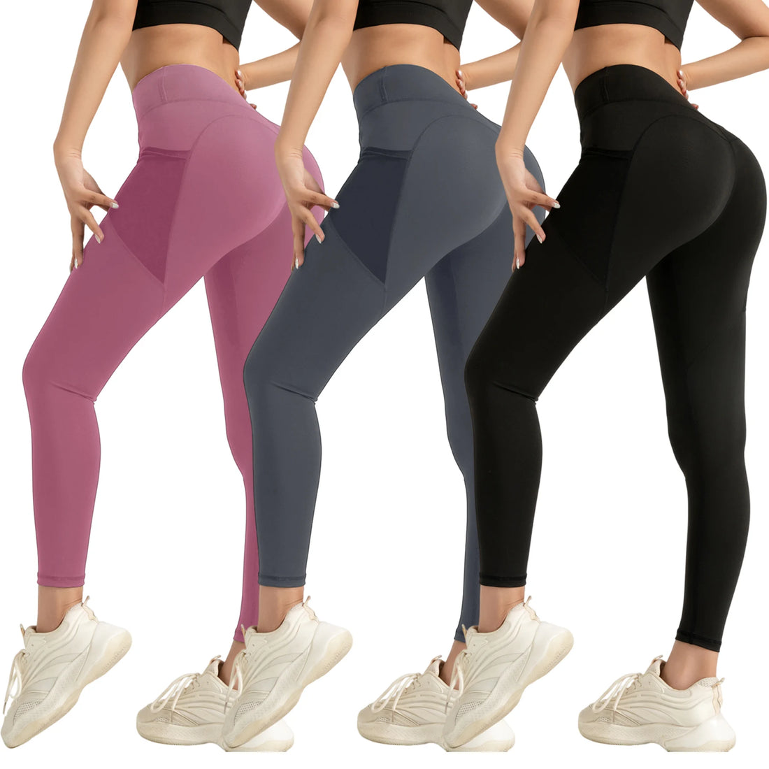 Saashi Women's 3PCS High Waist Yoga Pants With Pockets Tummy Control Leggings.