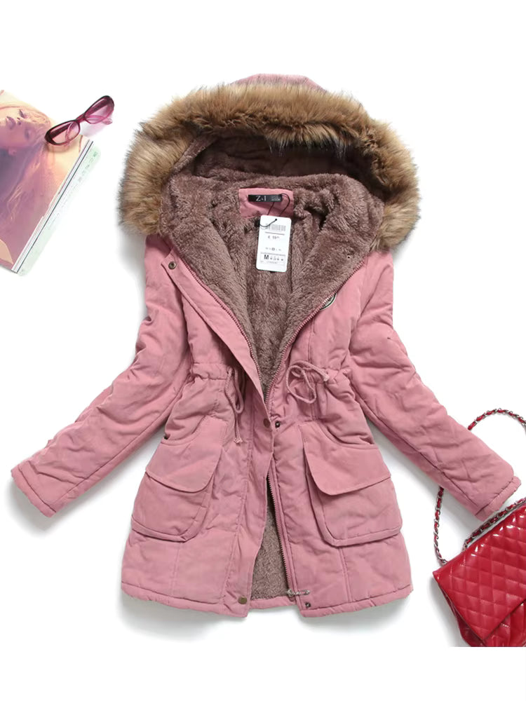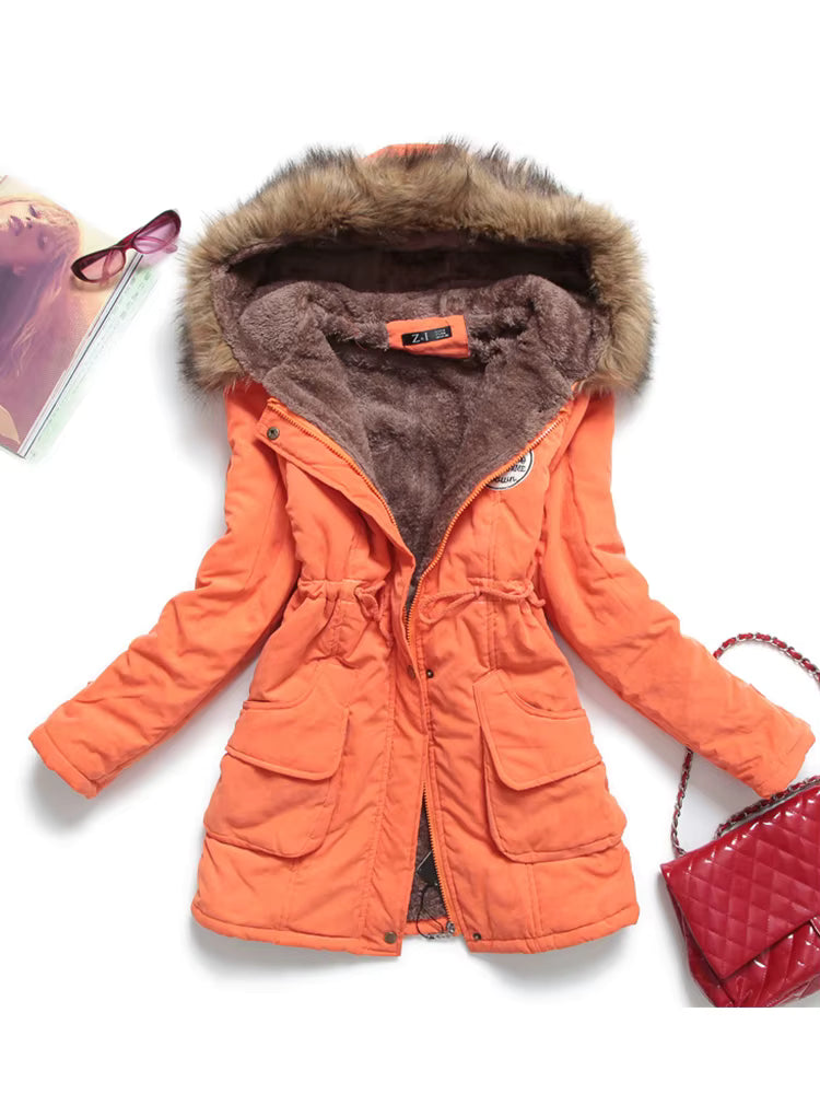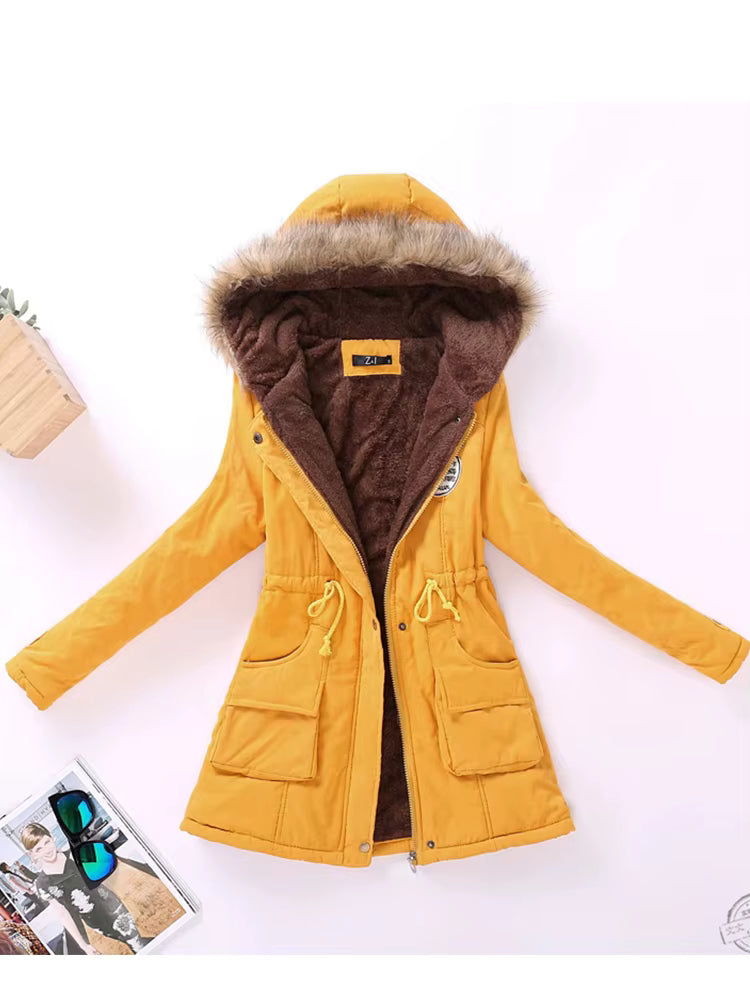 Saashi Hooded Cotton-Padded Parka Jacket for Women – Medium-Long Slim Fit Warm Outwear Coat for Casual & Travel Wear