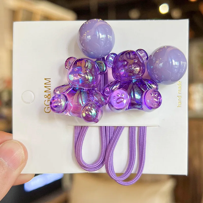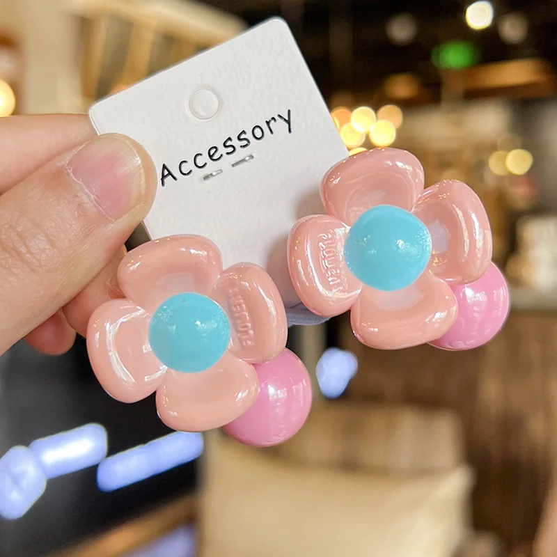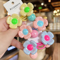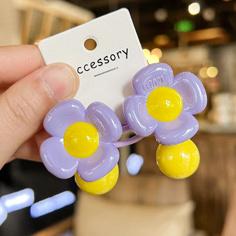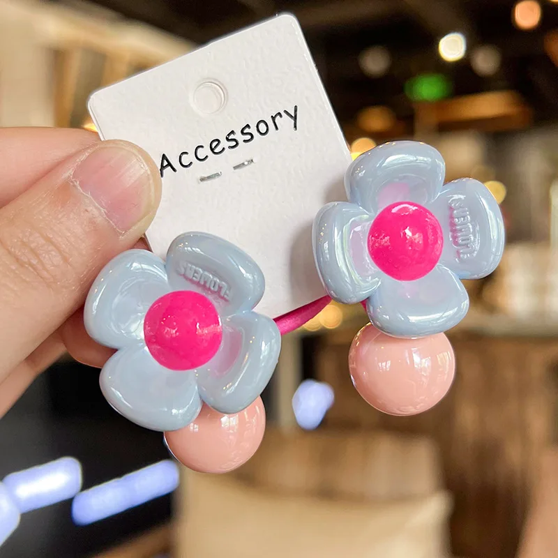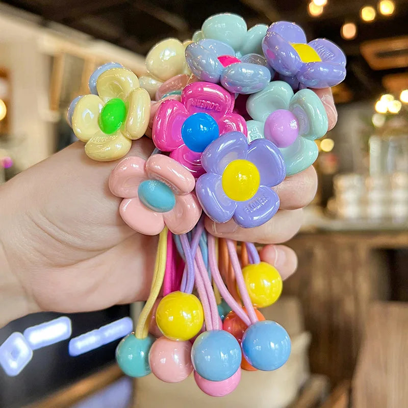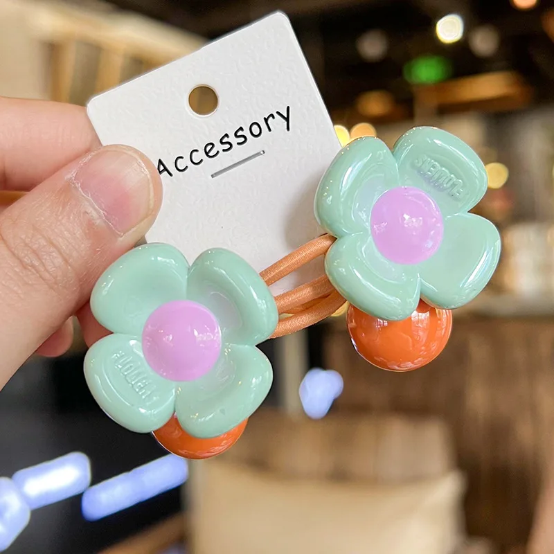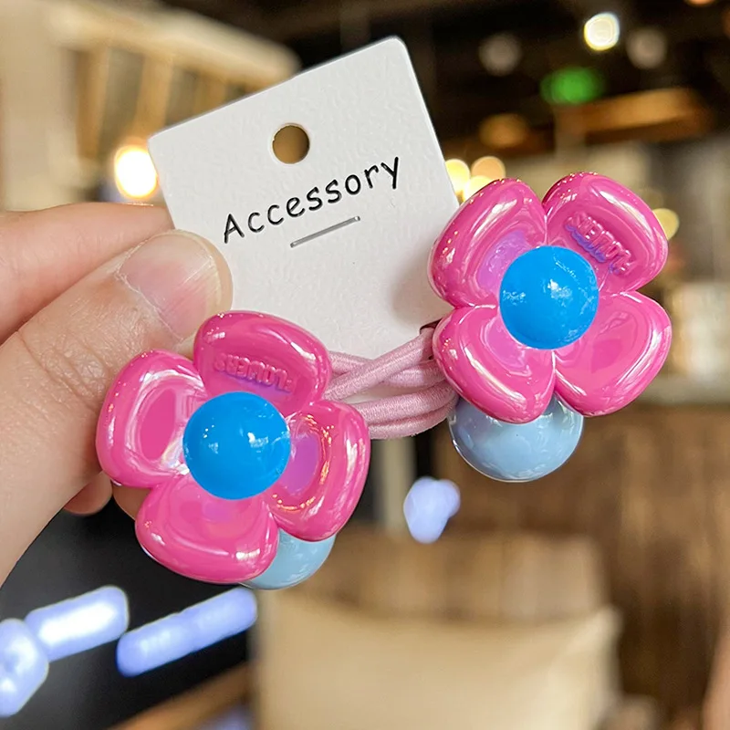 Saashi 2PCS Kids Colored Flower Hair Tie Girls Elastic Bands