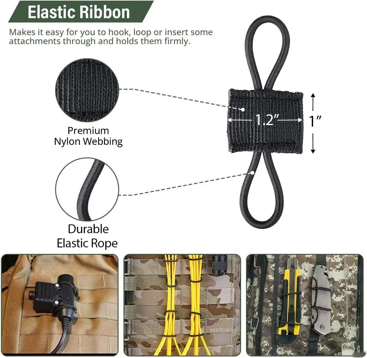 Saashi 4/10pcs Molle Elastic Retainer & Webbing Buckle