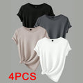 Saashi 4PCS Women’s Plus Size T-Shirts Set Casual Short Sleeve Summer Tops Outfit