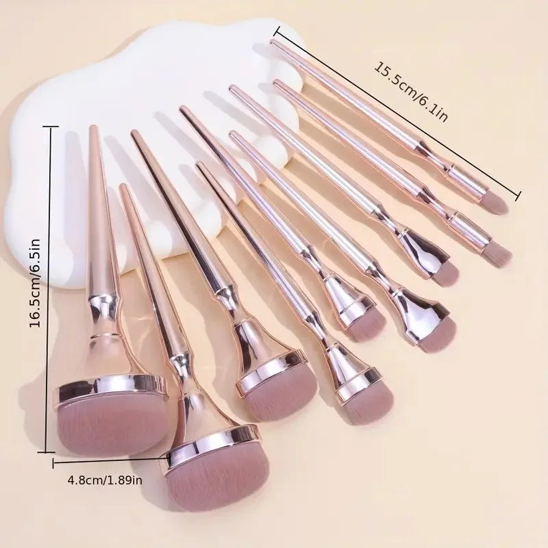 Saashi 9pcs Rose Gold Makeup Brush Set Eyeshadow Blush Highlighter Foundation Concealer.