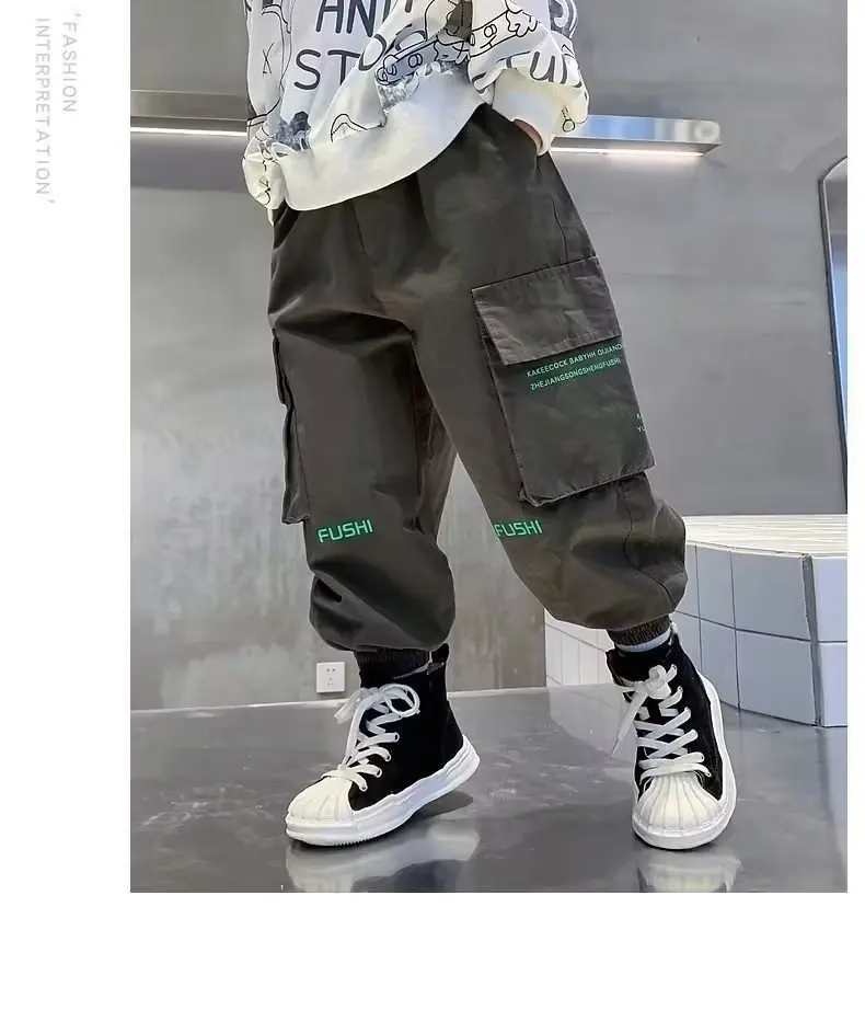 Saashi Boys Retro Cargo Pants: Summer Kids Clothes, Casual Sport Pants, for Boys