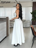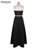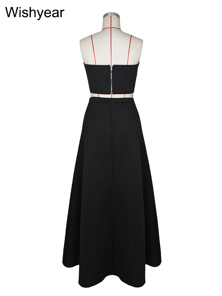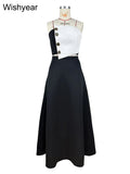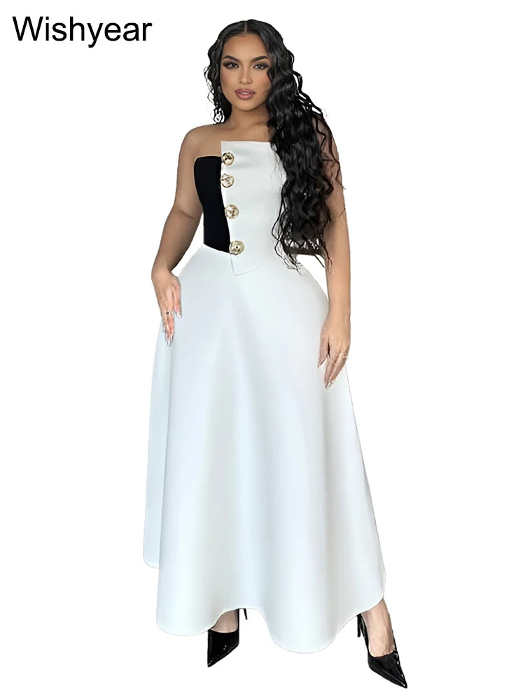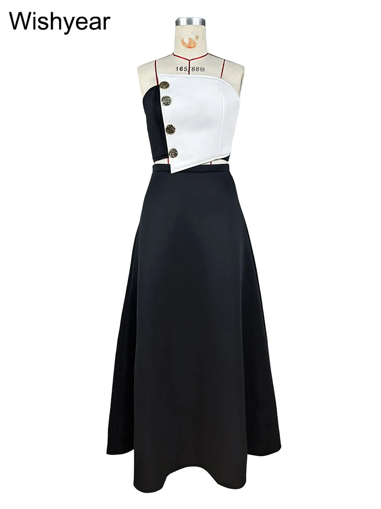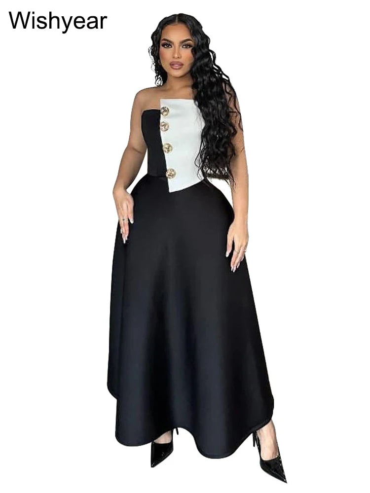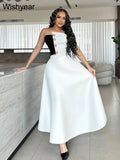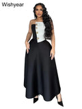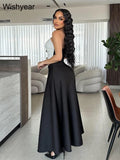 Saashi Elegant Black and White Strapless Top with High-Waist A-Line Skirt Two-Piece Set