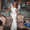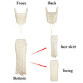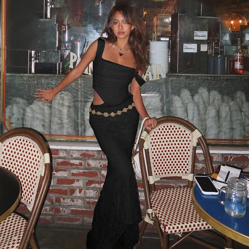 Saashi Elegant Lace-Up Crop Top and Maxi Skirt Two-Piece Formal Wedding Guest Dress