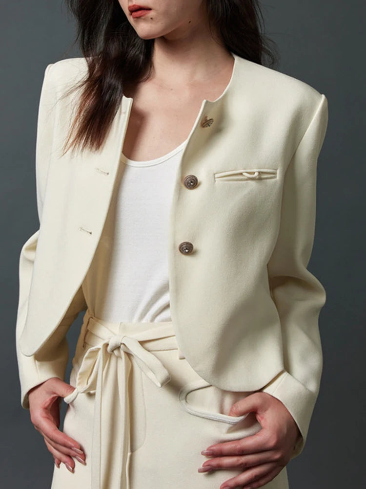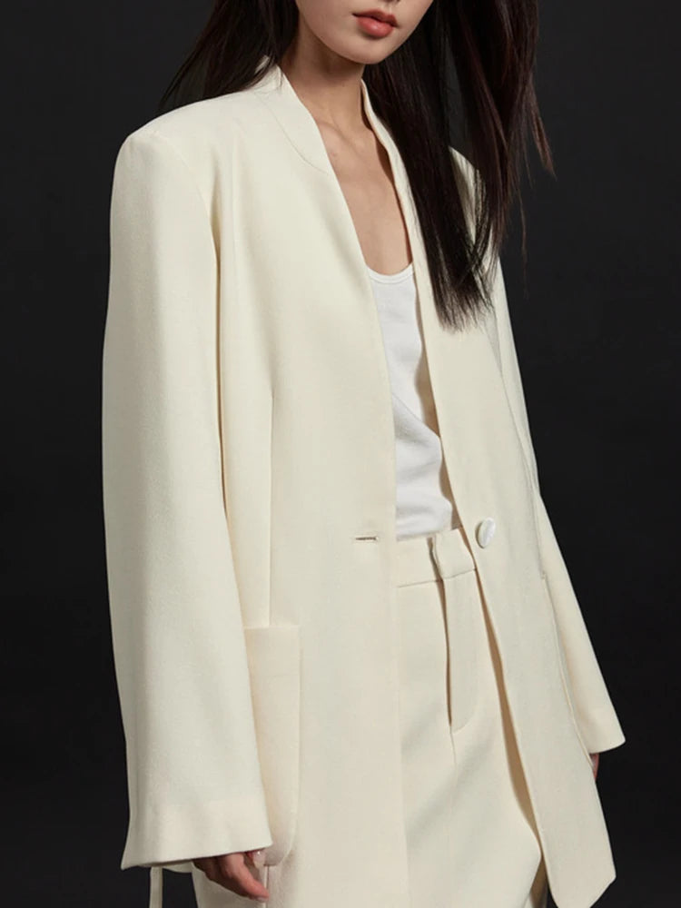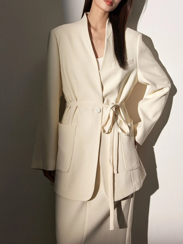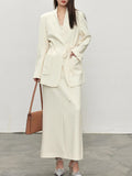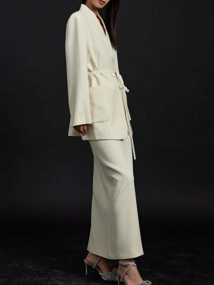 Saashi Elegant White Bandage Blazer and V-Neck Skirt Two-Piece Set for Women