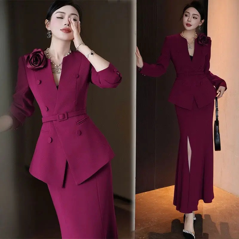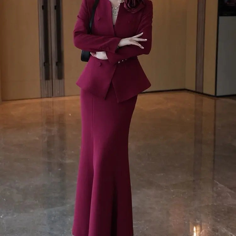 Saashi European Style Slim Fit Jacket with Fishtail Skirt Elegant Two-Piece Set for Women