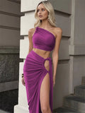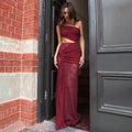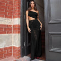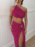Saashi Ladies Summer Two-Piece Set with Sleeveless Backless Crop Top and Side Slit Long Skirt