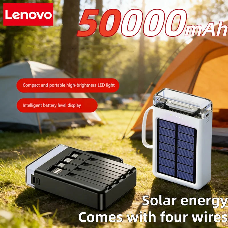 Saashi Lenovo 50000mAh Solar Power Bank with Built-in Cables & LED