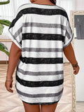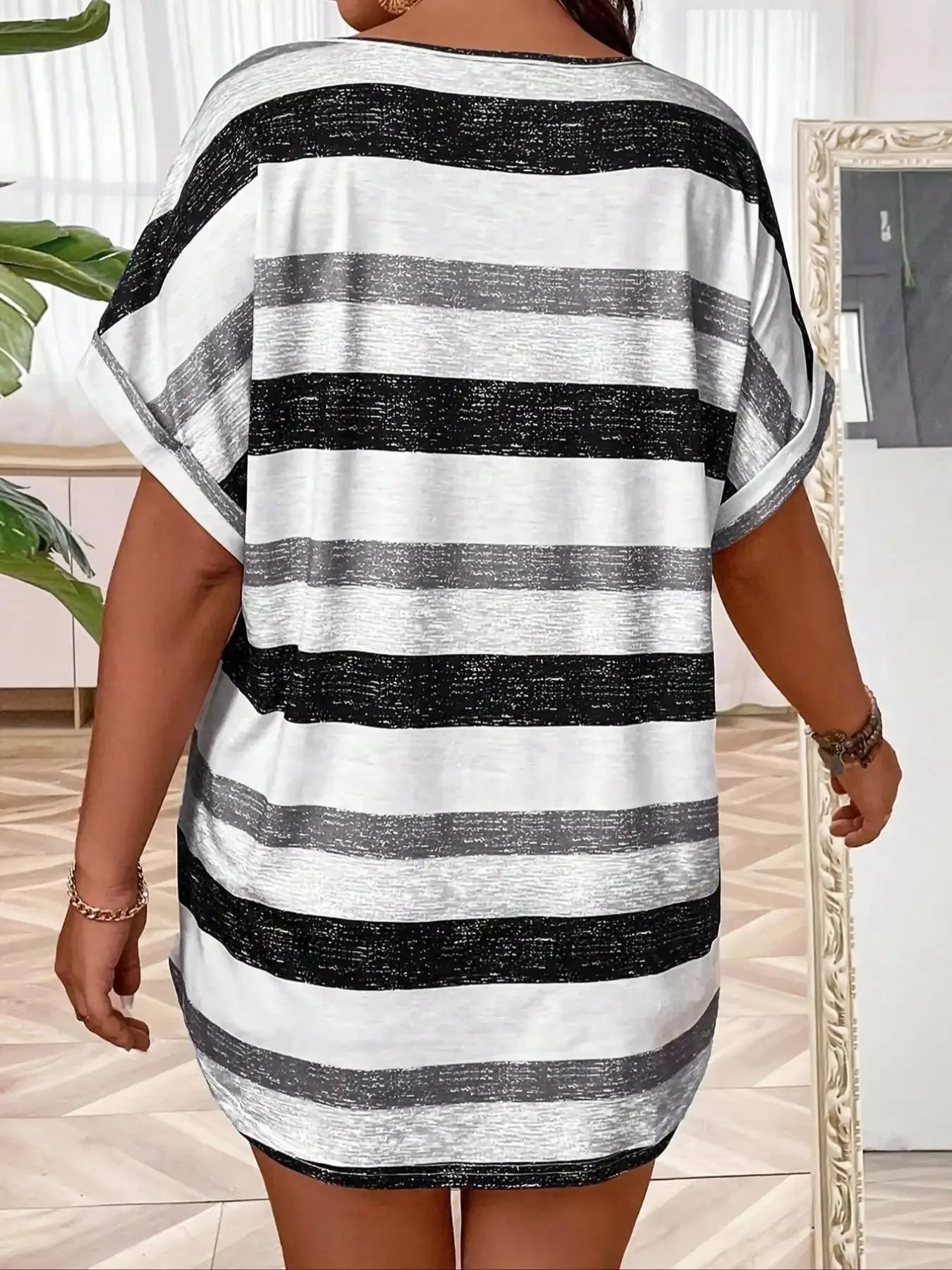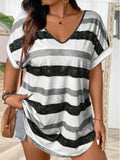 Saashi Plus Size Striped V-Neck T-Shirt for Women 1XL–5XL Casual Printed Knit Top