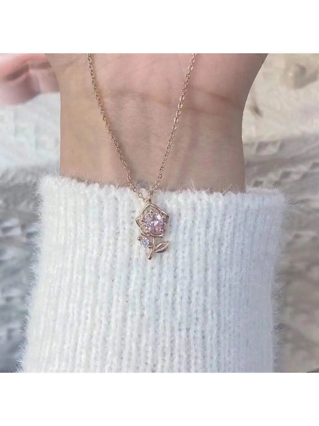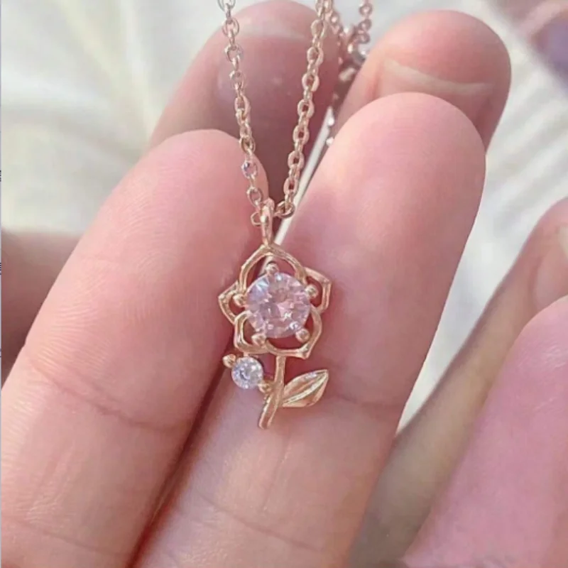 Saashi Rose Gold Pink Diamond Rose Necklace Minimalist Fashion Jewelry Stylish Pendant Daily Wear