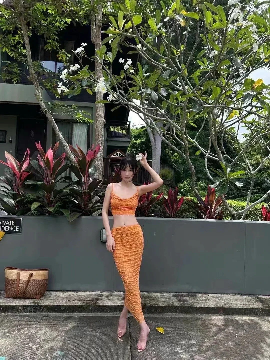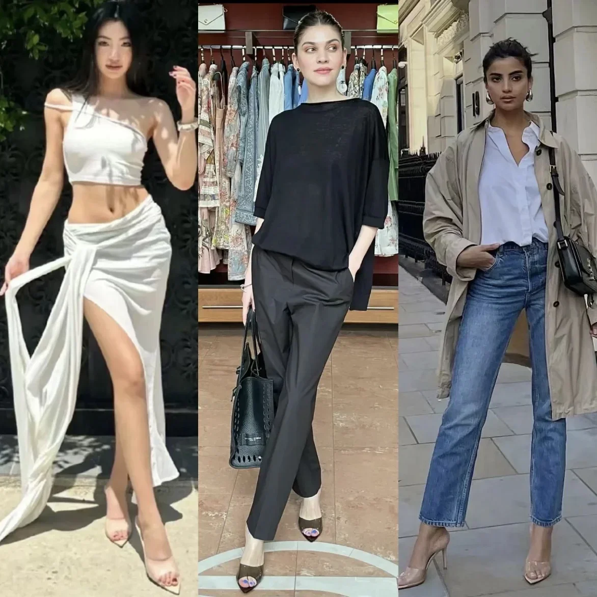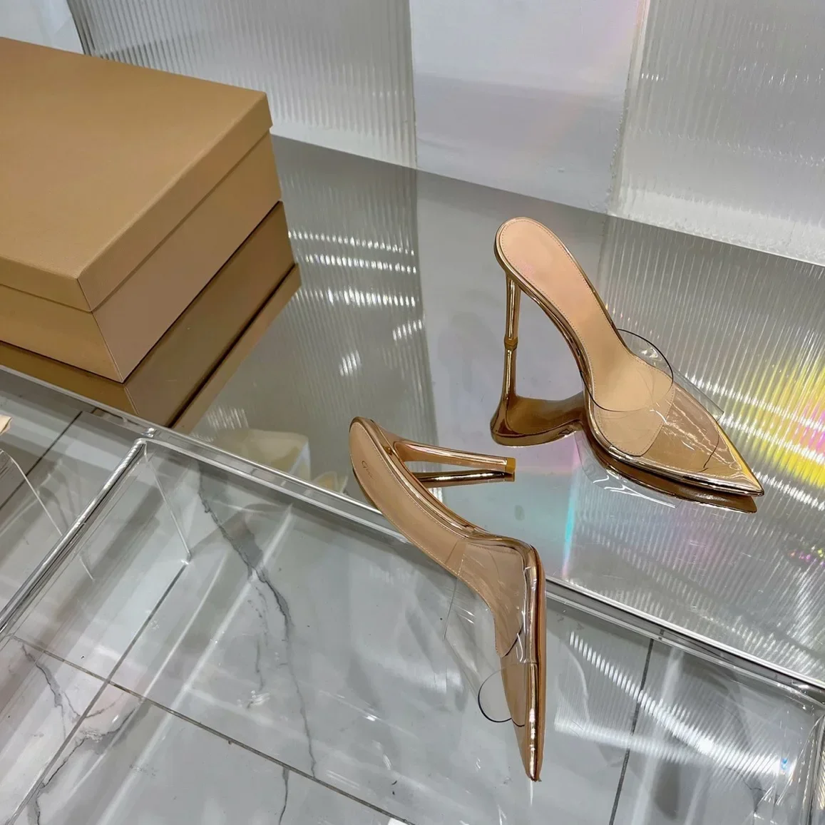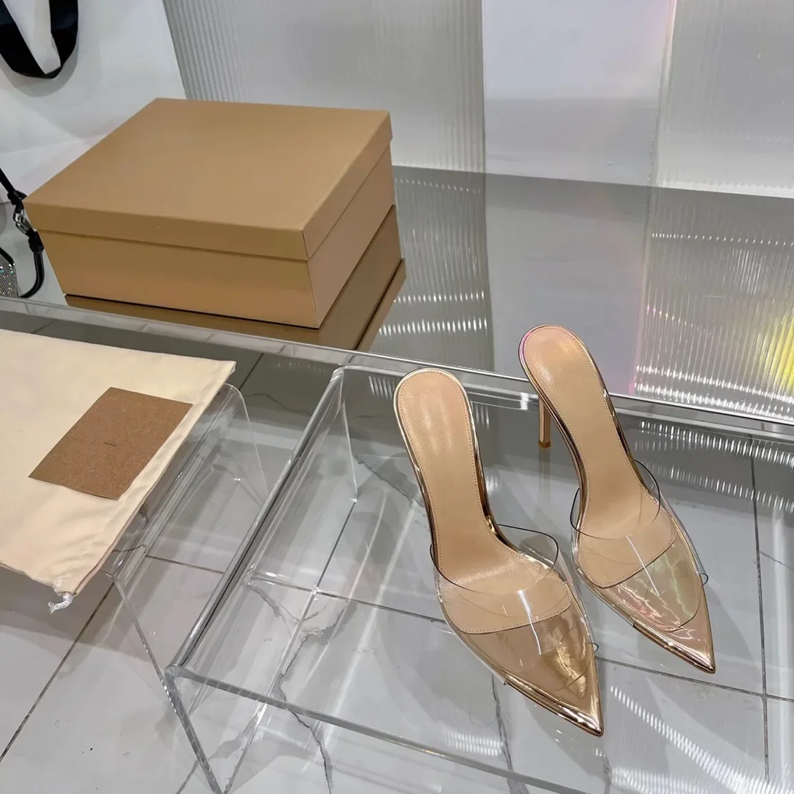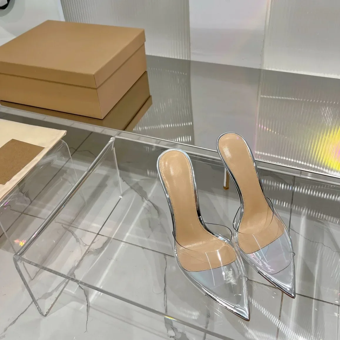 Saashi Transparent High Heeled Slippers for Women Fashion Slim Heeled Pointed Open Toe Flip Flops