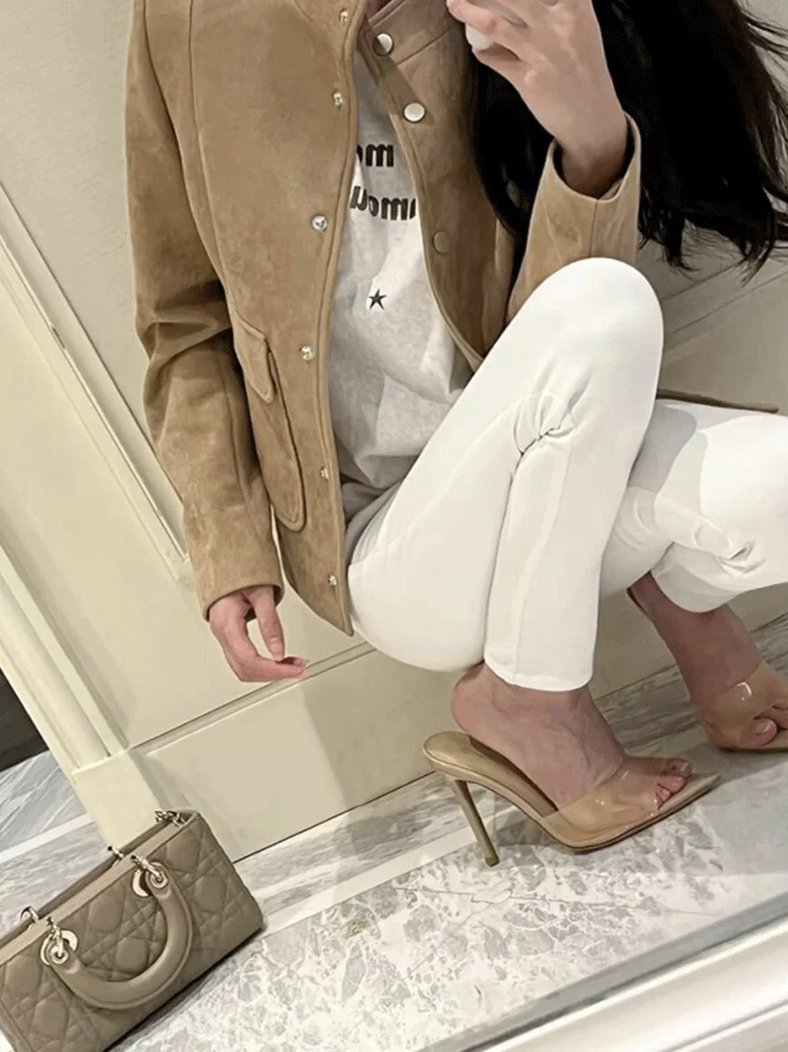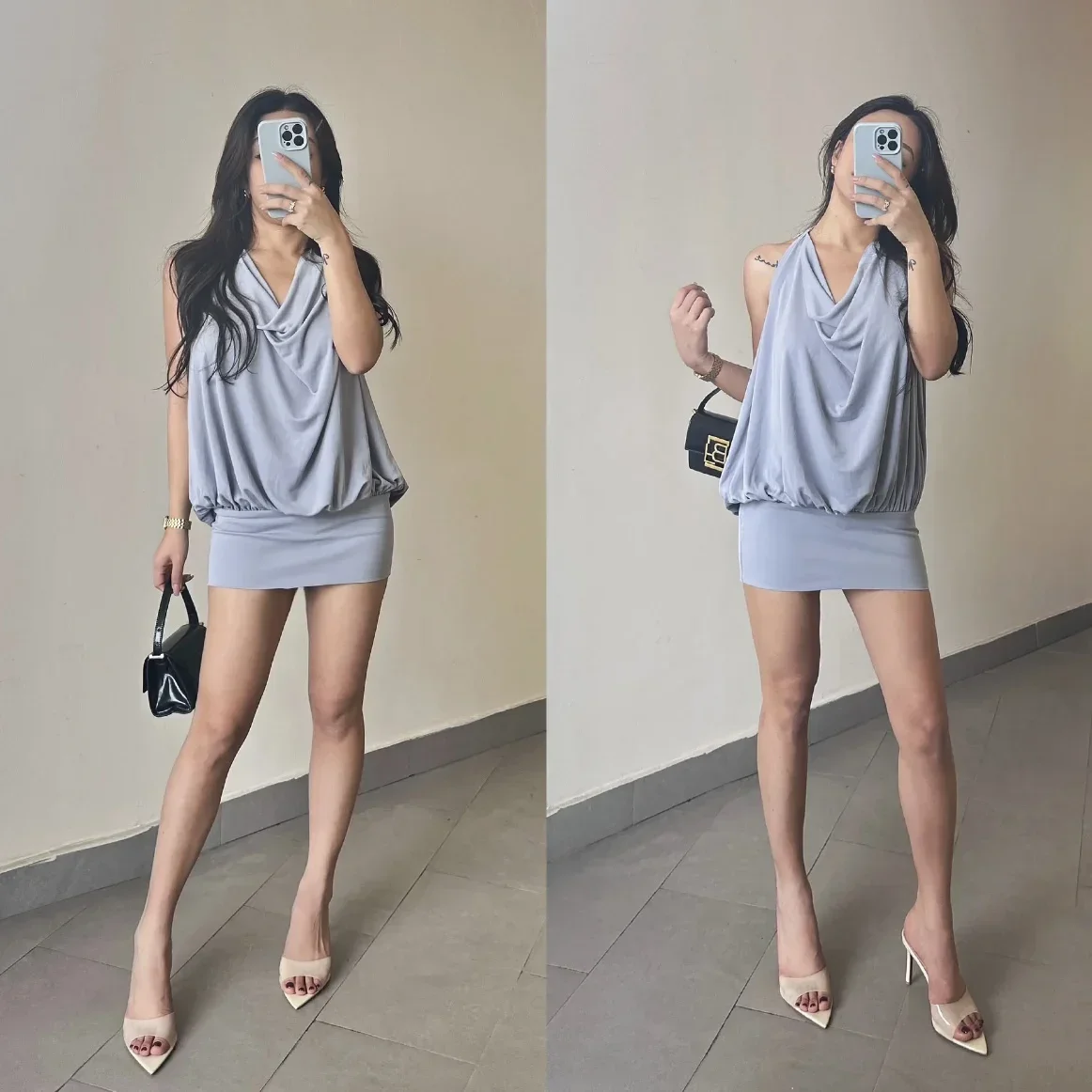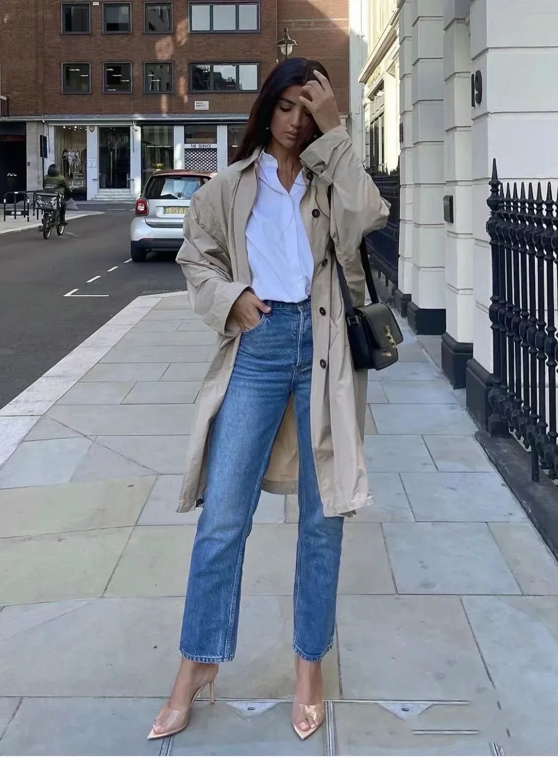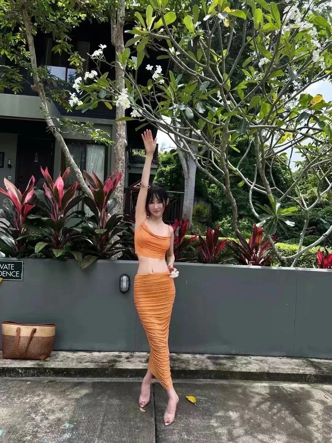 Saashi Transparent High Heeled Slippers for Women Fashion Slim Heeled Pointed Open Toe Flip Flops