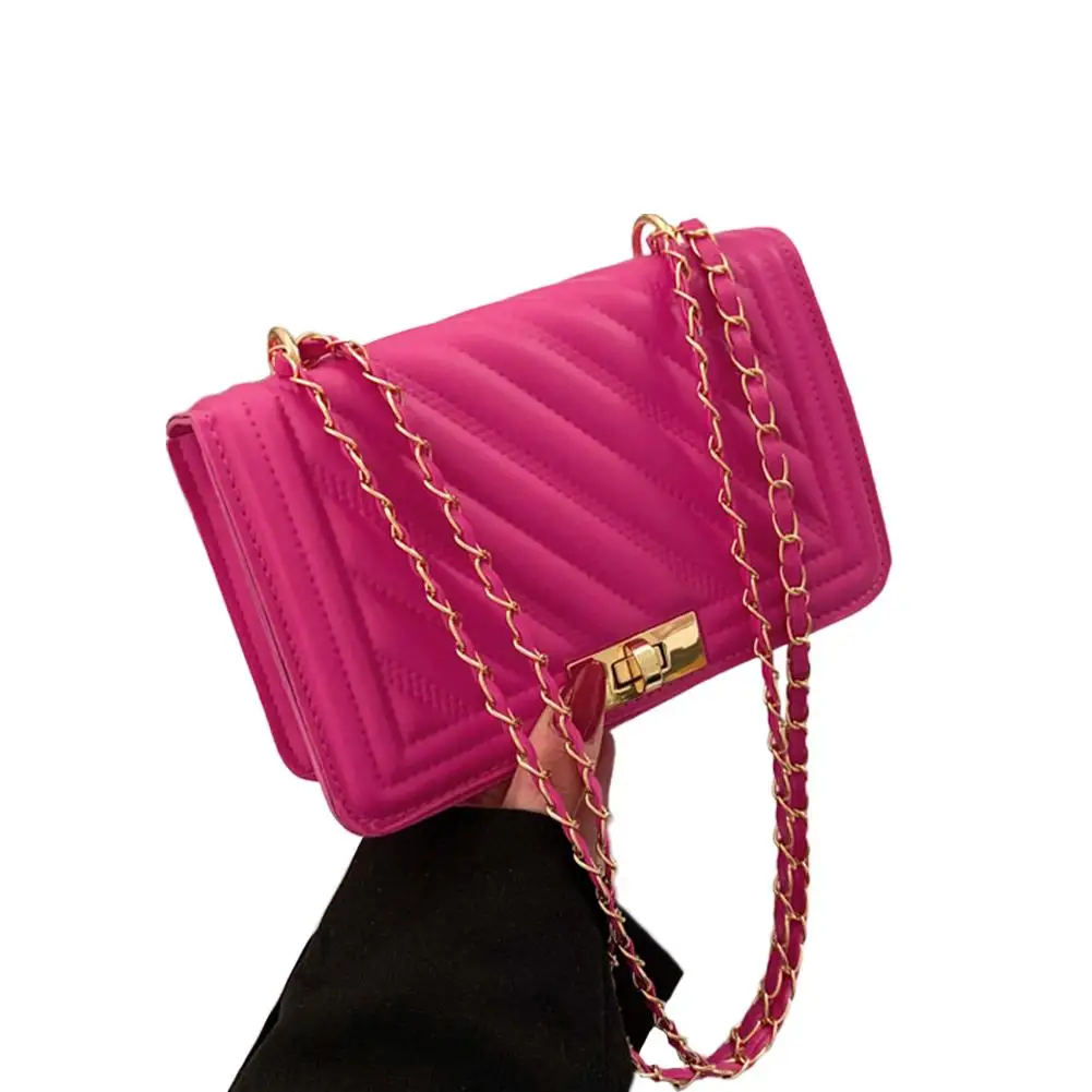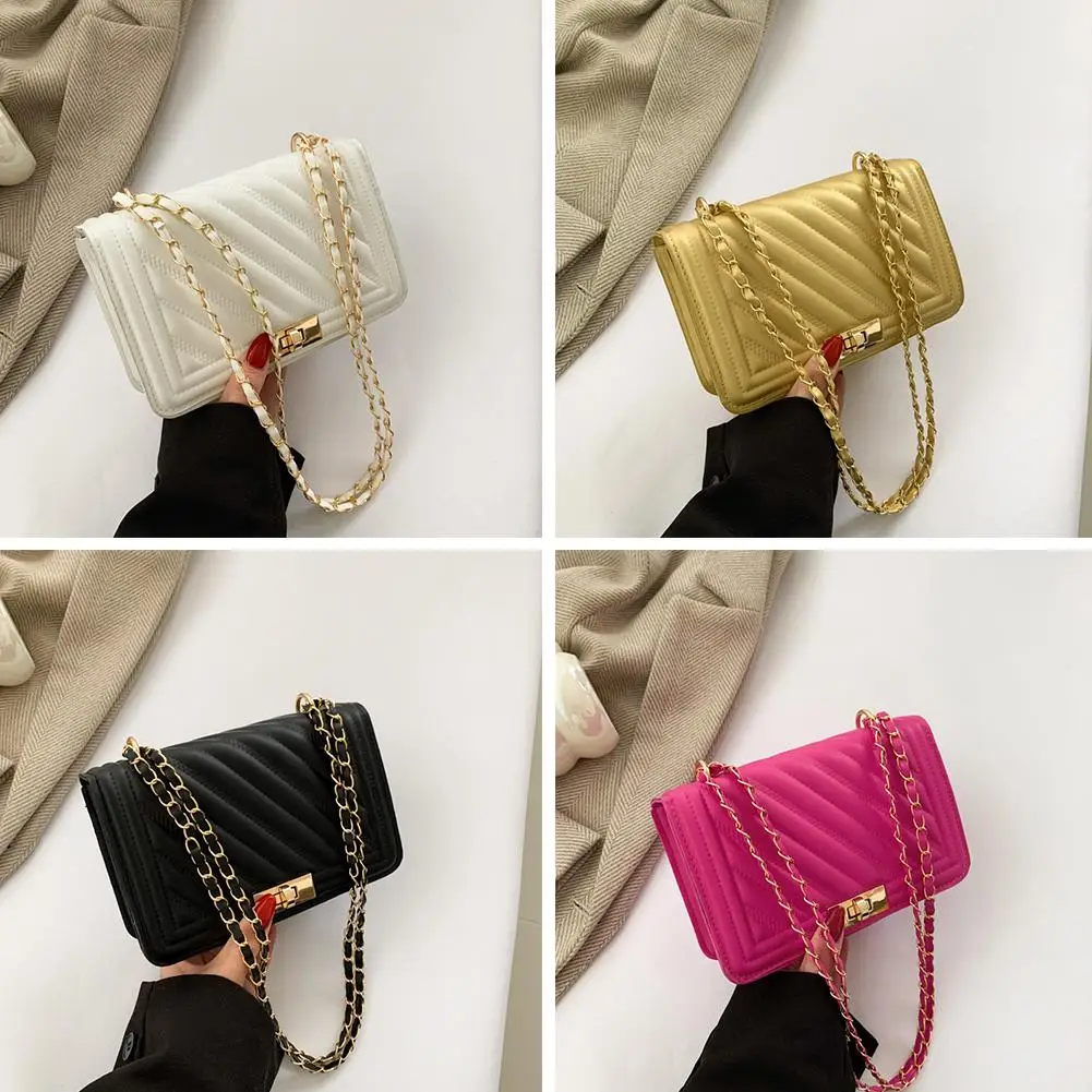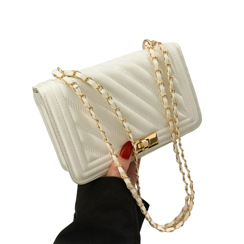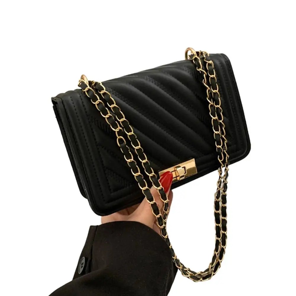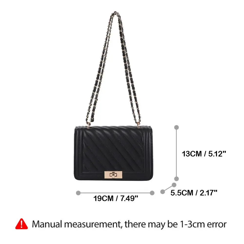 2. Elegant Hardware & Chain Strap: The bag is accentuated with gleaming gold-tone hardware, including a secure turn-lock clasp that adds a sophisticated accent. The versatile chain strap, interwoven with matching material, allows for comfortable wear as a shoulder bag or a crossbody.
