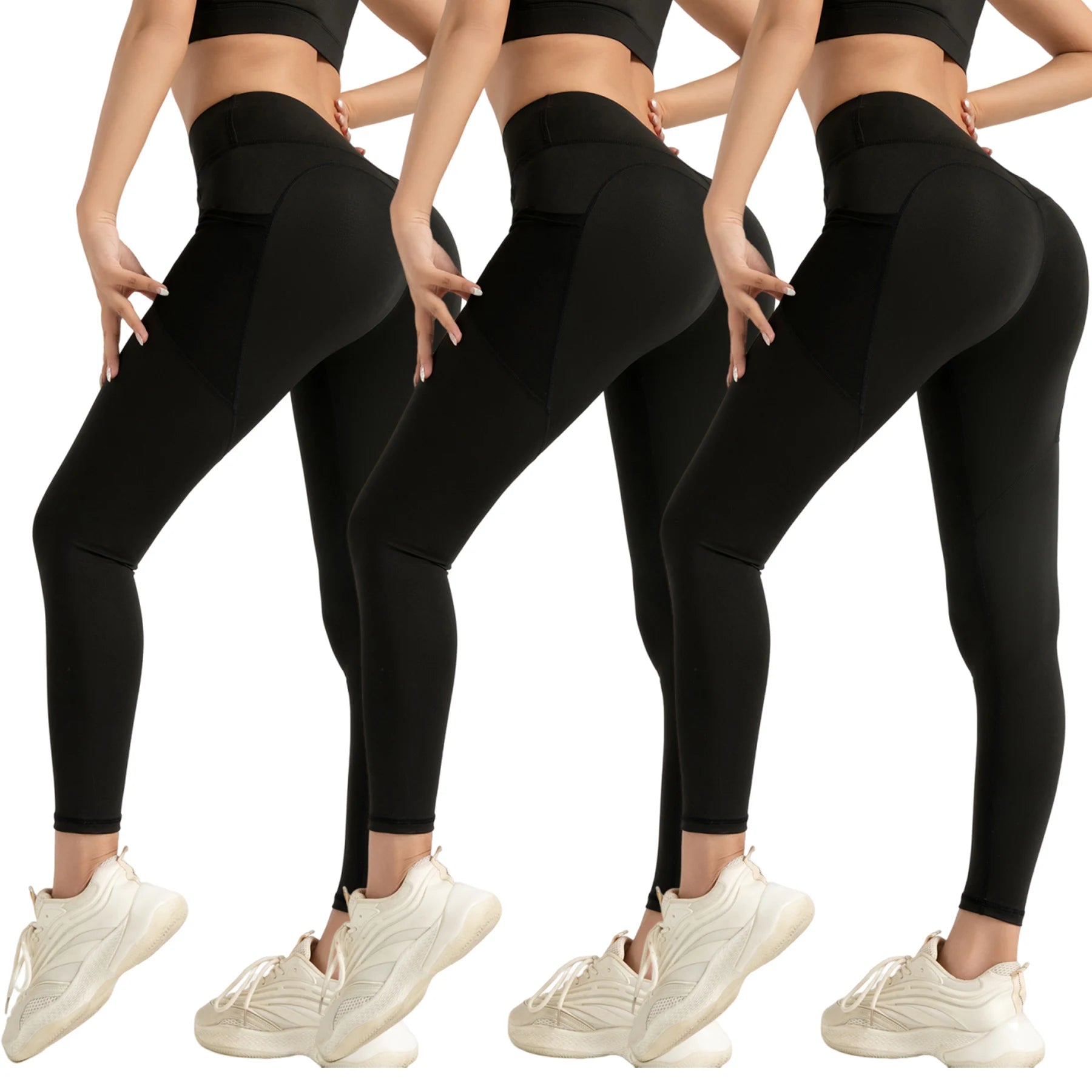 3-Pack High-Waisted Yoga Leggings with Pockets
