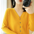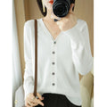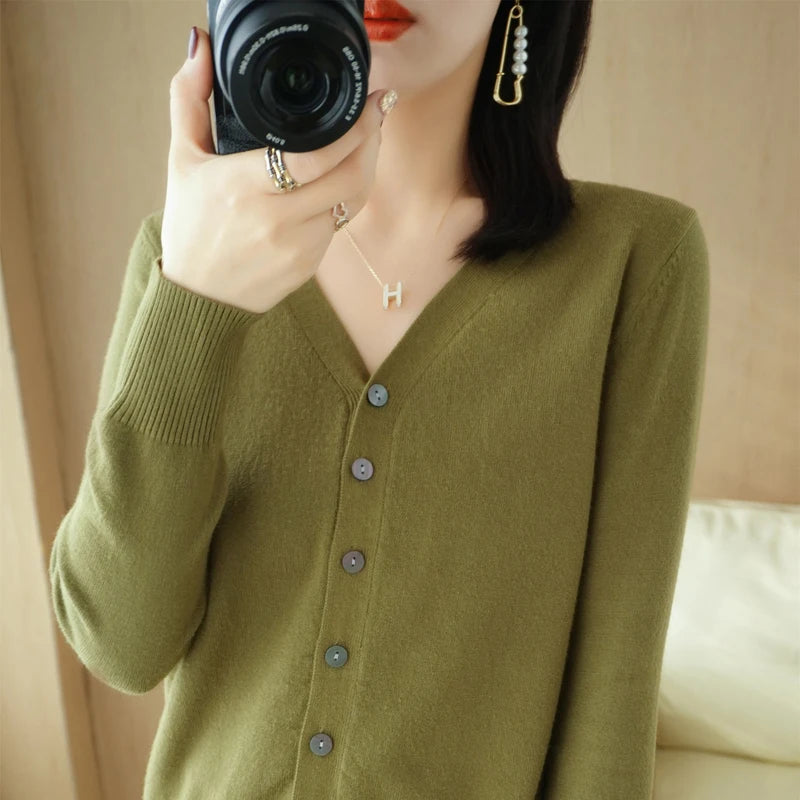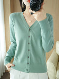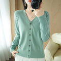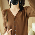 Saashi Women's Early Autumn Andy Cashmere V-Neck Solid Color Loose Casual Cardigan.