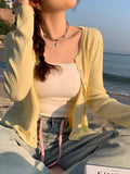Saashi Women's Summer Korean Elegant Knitted Long Sleeve Cardigan Casual Sweater Tanks.